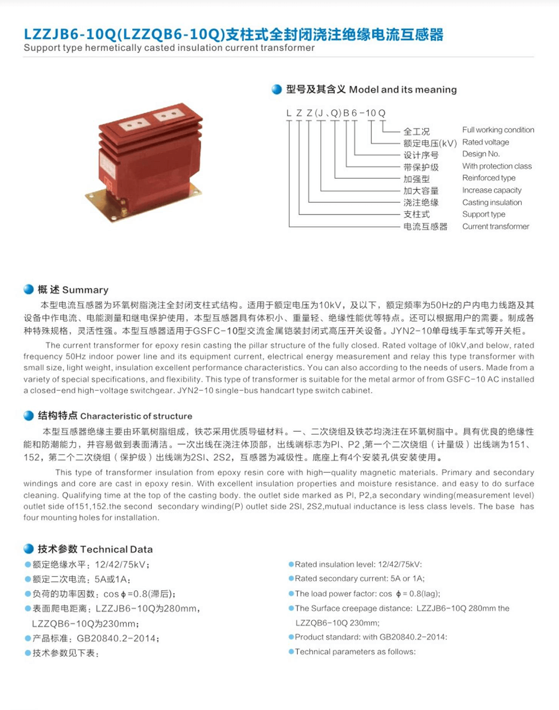 LZZJB6-10Q(LZZQB6-10Q)支柱式全封閉澆注絕緣電流互感器