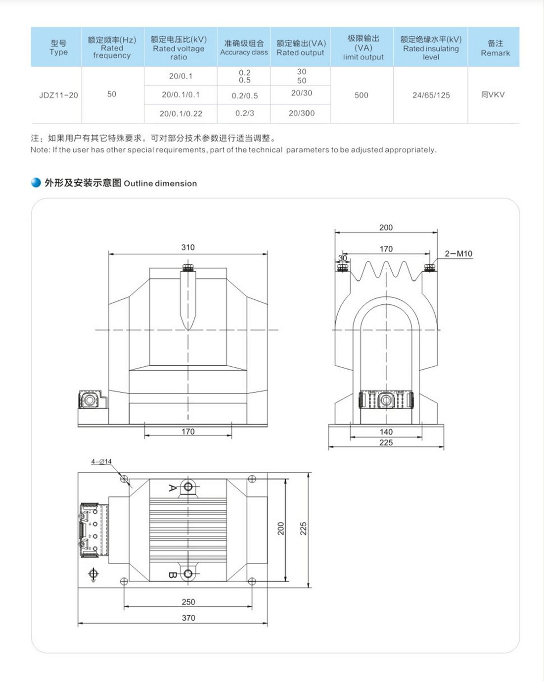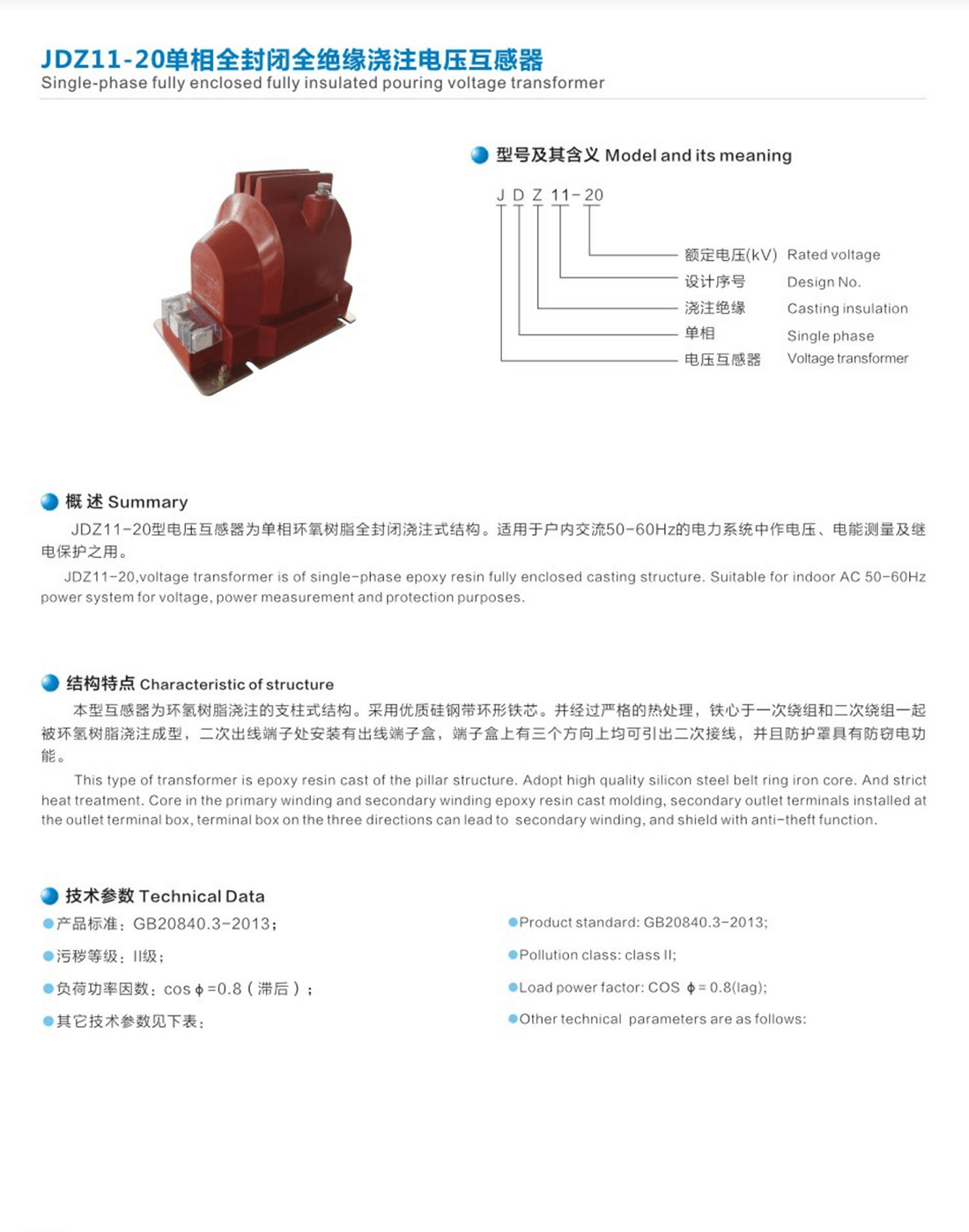 - 概述:JDZ11-20型電壓互感器為單相環(huán)氧樹脂全封閉澆注式結(jié)構(gòu)。適用于戶內(nèi)交流50- 60Hz的電力系統(tǒng)中作電壓、電能測(cè)量及繼電保護(hù)之用。