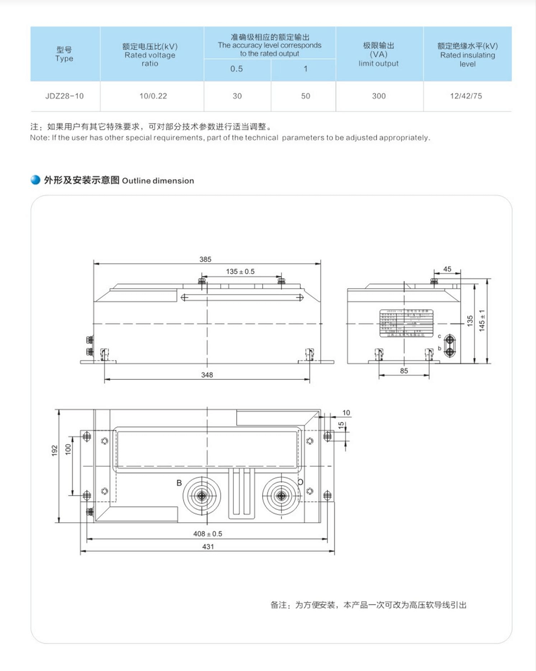 本型電壓互感器是ZW28- 10斷路器內(nèi)置專用電壓互感器,為環(huán)氧樹脂澆注全封閉式結(jié)構(gòu),供額定頻率為50HZ,額定電壓為10KV及以下中性點非有效接地的電力系統(tǒng)中做電壓、電能測量和繼電保護用。