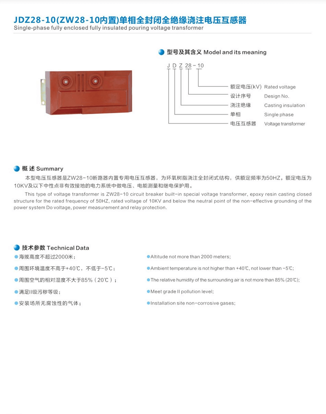 JDZ28-10(ZW28-10內(nèi)置)單相全封閉全絕緣澆注電壓互感器