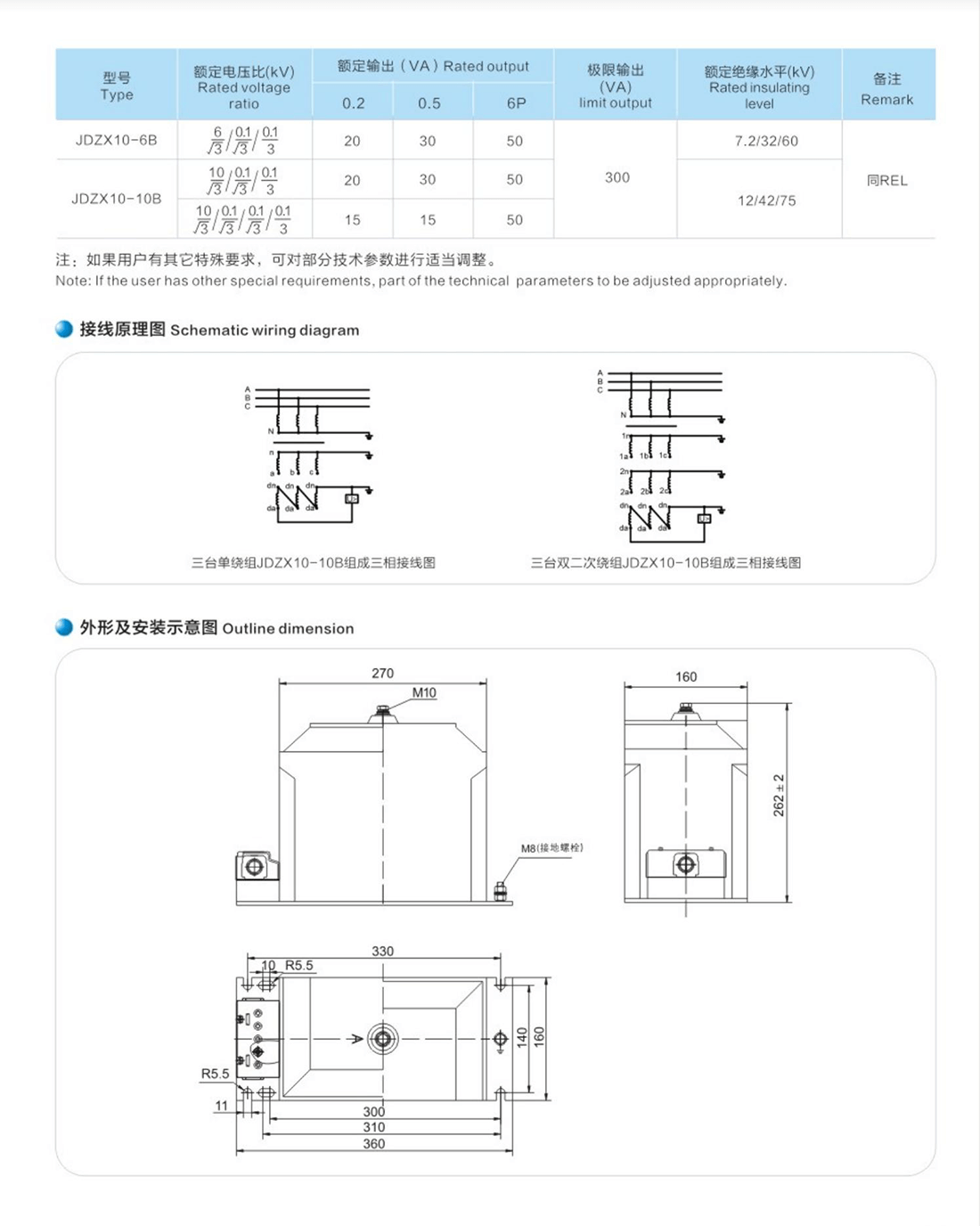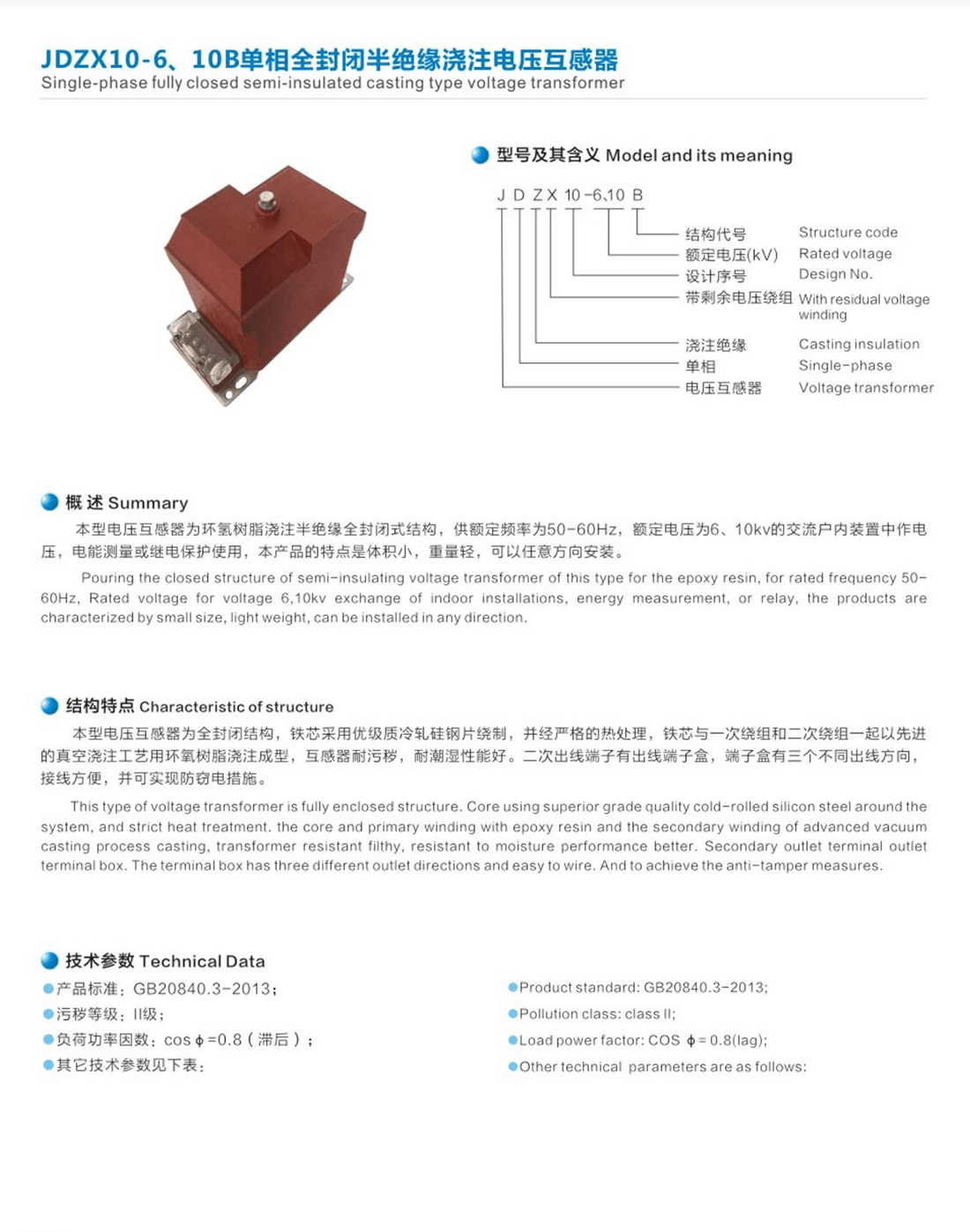 本型電壓互感器為環(huán)氫樹脂澆注半絕緣全封閉式結(jié)構(gòu),供額定頻率為50- 60Hz,額定電壓為6. 10kv的交流戶內(nèi)裝置中作電壓,電能測量或繼電保護(hù)使用,本產(chǎn)品的特點是體積小,重量輕,可以任意方向安裝。