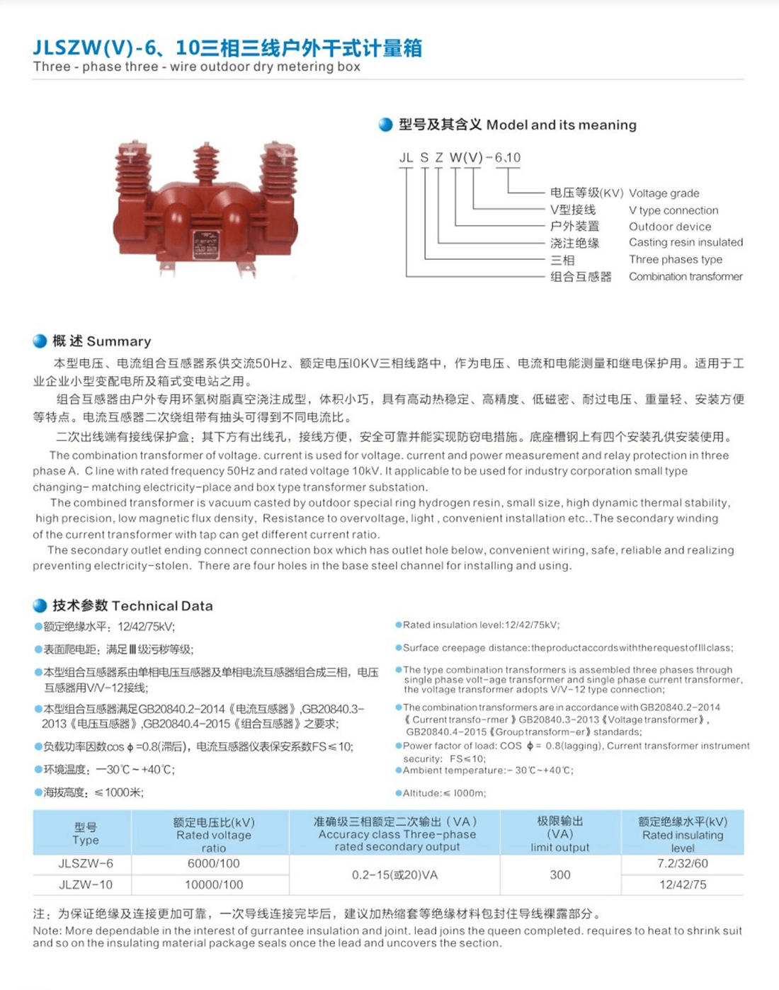JLSZW(V)-6、10三相三線戶外干式計量箱